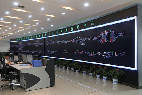 建成后的國家能源集團神朔鐵路調度中心大屏幕顯示系統,為DMIS系統(行車調度指揮信息系統)、TMIS系統(鐵路運輸管理信息系統)、集疏運系統、視頻監控系統、搶險救援系統等專業應用提供高質量的顯示平臺。可在全屏范圍內12行×3列區域點對點像素顯示超高分辨率DMIS系統運行圖,顯示列車實時行車狀態,并為TMIS系統、集疏運系統、CCTV視頻監控系統、搶險救援系統提供分區顯示或混合顯示,分區可任意調整,使大屏幕顯示系統成為數據信息集中查詢、集中顯示、功能完善、高效調度指揮的綜合管理平臺,為鐵路貨運調度、監控和應急指揮提供實時精確的圖像信息。