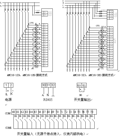 三相U,3路三相I,RS485/Modbus