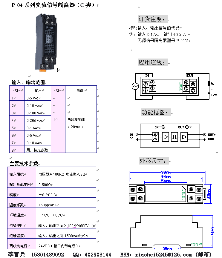 P-04系列交流信號(hào)隔離器(一入一出)